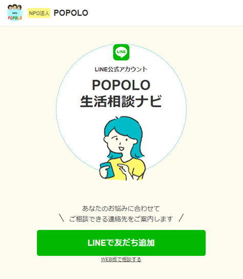 静岡の生活困窮者支援団体からの依頼で、生活に困っている人たちを適切な支援先につなげるLINEボット「生活相談ナビ」の活用を支援。